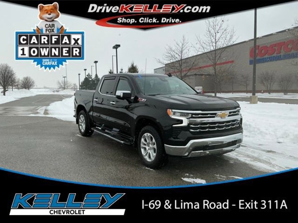 CARFAX One-Owner. Apple CarPlay / Android Auto, Backup Camera, Bluetooth, Leather Seats, Remote Start. Black 2023 Chevrolet Silverado 1500 EcoTec3 5.3L V8 16/20 City/Highway MPG Odometer is 48115 miles below market average!Kelley Automotive Group is proud to Pre-Apply Forever New Paint Protection to ALL New & Pre-Owned vehicles. To receive the Forever New Limited Warranty, $399 will be added to the purchase price of your Pre-Owned Vehicle. (Kelley Price + $399 (to receive Limited Warranty)Why Choose Us? You will receive FREE UNLIMITED CAR WASHES, good at ALL State of the Art Kelley Car Wash Locations, for as long as you own your vehicle! (**2 washes per week equates to an $832.00 value per year!**) Free Car Wash Locations include the 14/69 Auto Mall, Kelley Chevrolet, and Tom Kelley Chevrolet Buick Ford! (Just south of Fort Wayne in Decatur, IN)