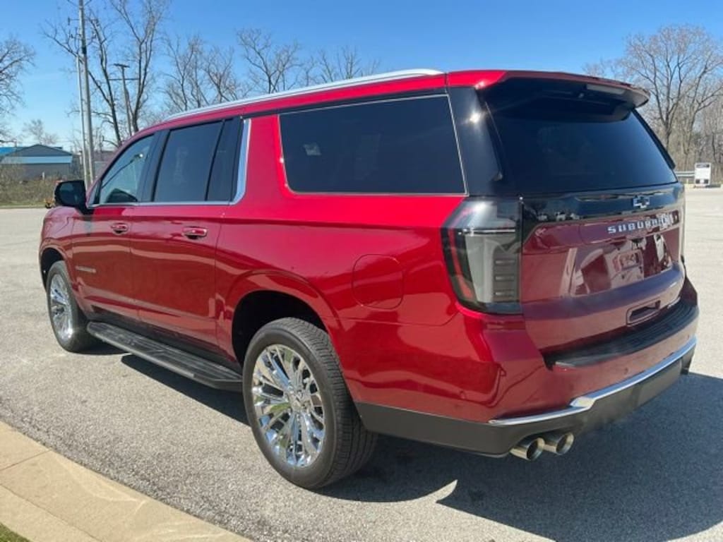 CARFAX One-Owner. Apple CarPlay / Android Auto, Backup Camera, Bluetooth, Leather Seats, Leather Wrap Steering Wheel, Tow Package, Trailer Package, WiFi. Radiant Red Tintcoat 2025 Chevrolet Suburban EcoTec3 5.3L V8 14/19 City/Highway MPG