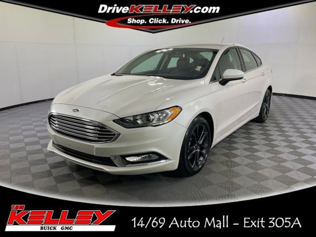 Experience the perfect blend of style, technology, and efficiency with this 2018 Ford Fusion SE. Boasting a sleek white exterior and a well-appointed interior, this Fusion is the ideal choice for the discerning driver.Highlights of this vehicle include: Fusion SE Appearance Package Fusion SE Technology Package Voice-Activated Touchscreen Navigation System Dual-Zone Electronic Automatic Temperature Control Leather-Wrapped Steering Wheel 18 Magnetic-Painted Aluminum WheelsUnder the hood, the 1.5L EcoBoost engine delivers impressive power and efficiency, with an EPA-estimated 34 MPG on the highway. The 6-speed automatic transmission ensures a smooth and responsive driving experience, while the front-wheel-drive configuration provides confident handling in a variety of road conditions.The Fusion SE's spacious interior is both comfortable and well-equipped. The SYNC 3 infotainment system, with its 8-inch touchscreen and Apple CarPlay/Android Auto integration, keeps you connected and entertained. The premium audio system with 11 speakers provides a truly immersive listening experience.Safety is also a top priority, with features like the Reverse Sensing System, 911 Assist, and a suite of airbags to help protect you and your passengers. The Fusion's nimble handling and advanced driver-assistance technologies make it a pleasure to drive, whether you're commuting or embarking on a road trip.This 2018 Ford Fusion SE is a standout in its class, offering a winning combination of style, technology, and efficiency. Experience the difference for yourself schedule a test drive today and discover why this Fusion should be your next vehicle.Kelley Automotive, every pre-owned vehicle is professionally treated with Forever New PaintGuard for only $399. This advanced protective coating creates a durable, invisible barrier that shields your vehicle's paint from UV damage, bird droppings, and environmental contaminants, helping preserve that like-new finish. Looking for complete protection? Upgrade to the Forever New Total Protection Package for just $999, which includes: PaintGuard, SoundGuard, RustGuard, LeatherGuard, FiberGuard.When you purchase a vehicle at Kelley Automotive, you'll also receive free car washes for life at any of our three convenient locations, making it easy to keep your vehicle clean and cared for year-round!Need repairs? We've got you covered. Kelley Automotive operates four professional Body Shop locations offering expert collision repair and high-quality service to keep your vehicle looking and driving its best. Experience unmatched protection, maintenance, and service all in one place. Contact your Kelley Automotive sales representative today to schedule a test drive and see why this Fusion should be your next vehicle.