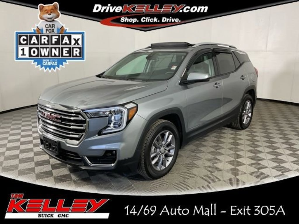 Powered by a 1.5L DOHC engine and paired with a responsive 9-Speed Automatic transmission, the Terrain SLT offers impressive all-wheel-drive capability and an EPA-estimated 23 city/28 highway mpg, making it both efficient and capable.